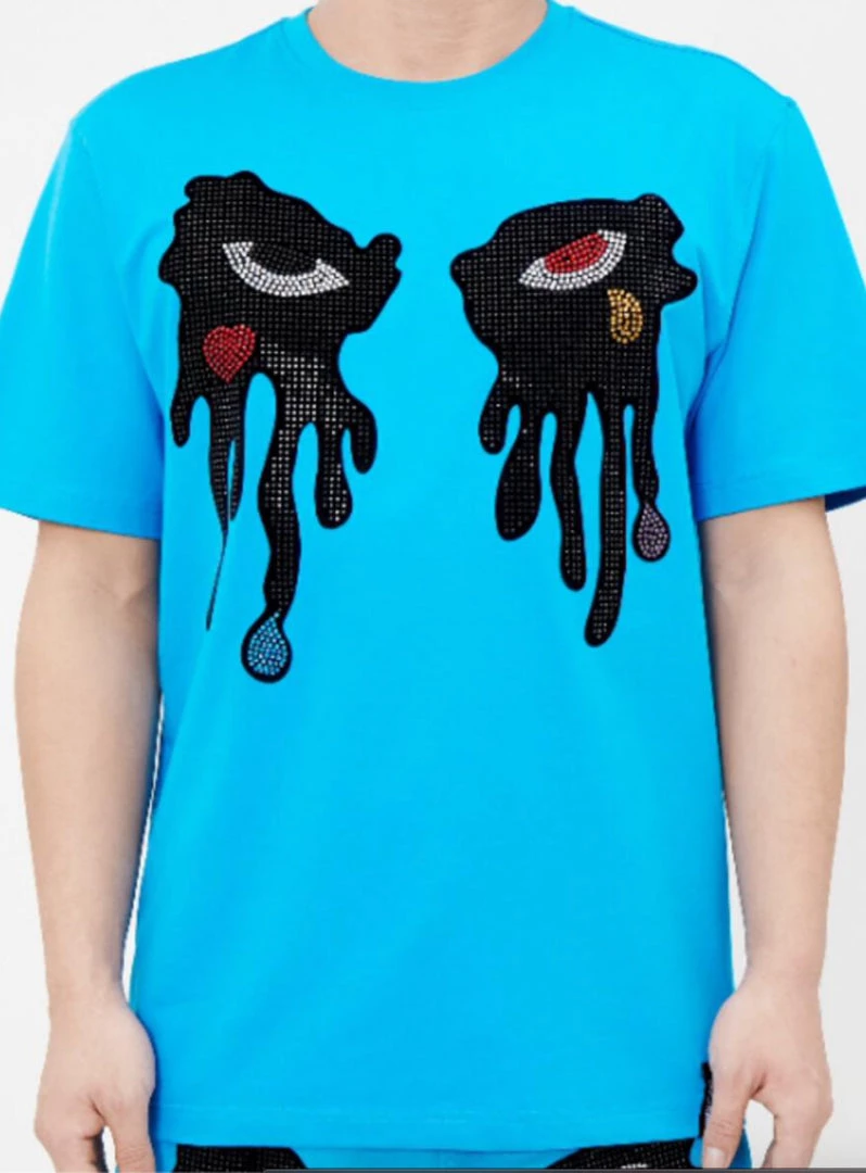 Roku Studio T-Shirt – Rhinestone Dripping Eyes – Blue – RK1480389