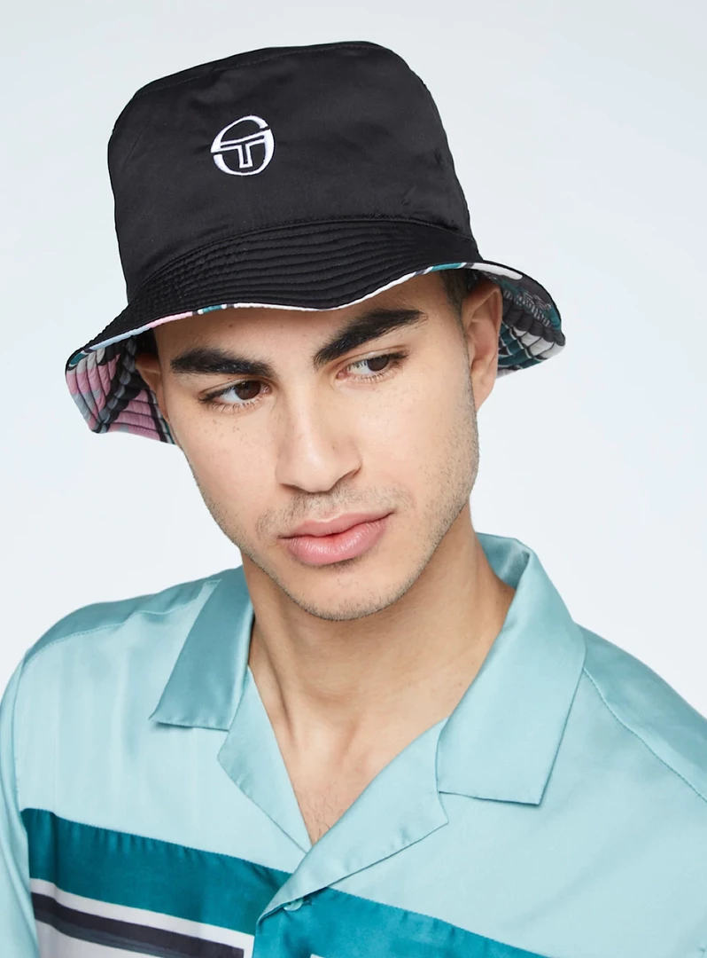 - 100% drapey crinkle nylon in solid black w/ embroidered ‘ST’ monogram logo Embroidered ventilation eyelets