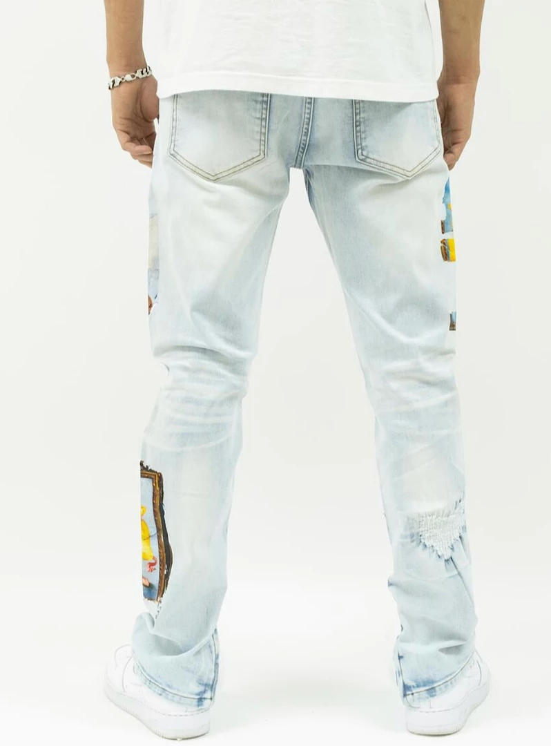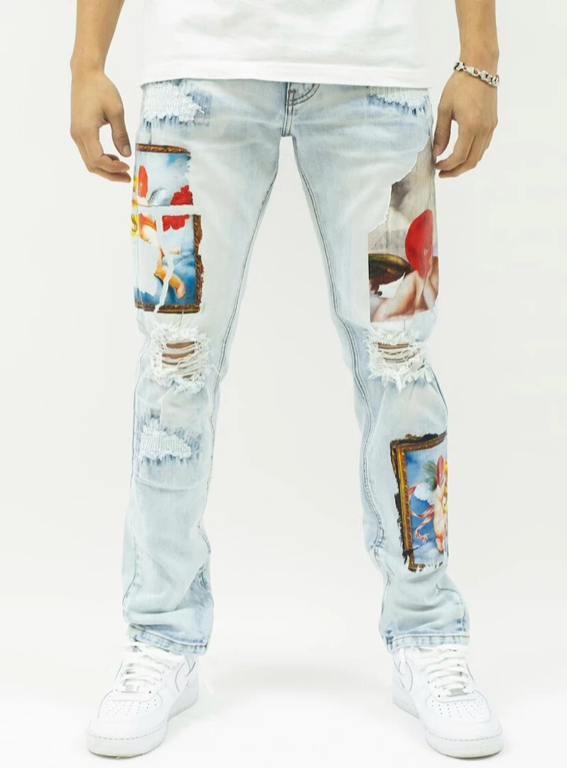 This jeans are high quality with a unique designs of colored brush strokes. Each style fits true to size.