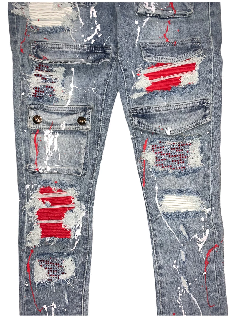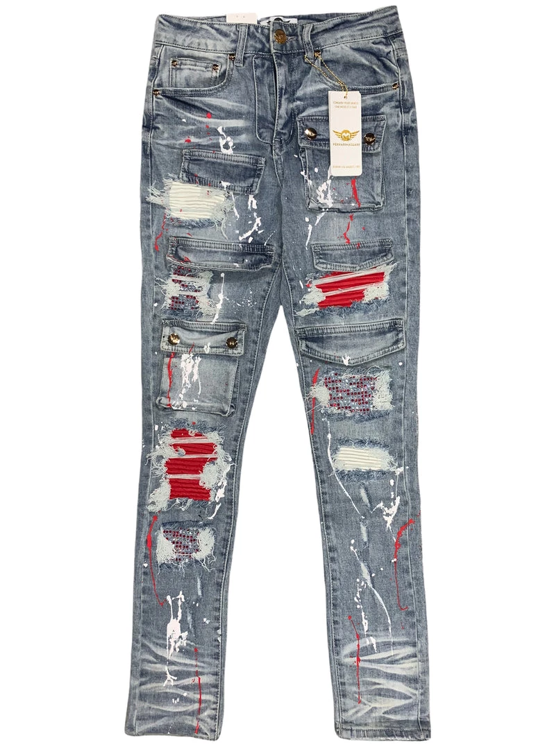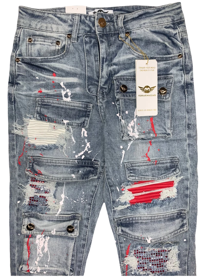 Shop All Ferrari Massari Jeans – Drippen Solider Red And White – Light Blue