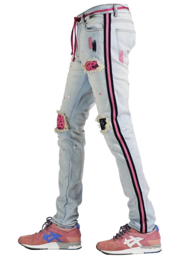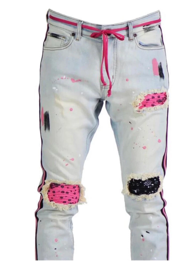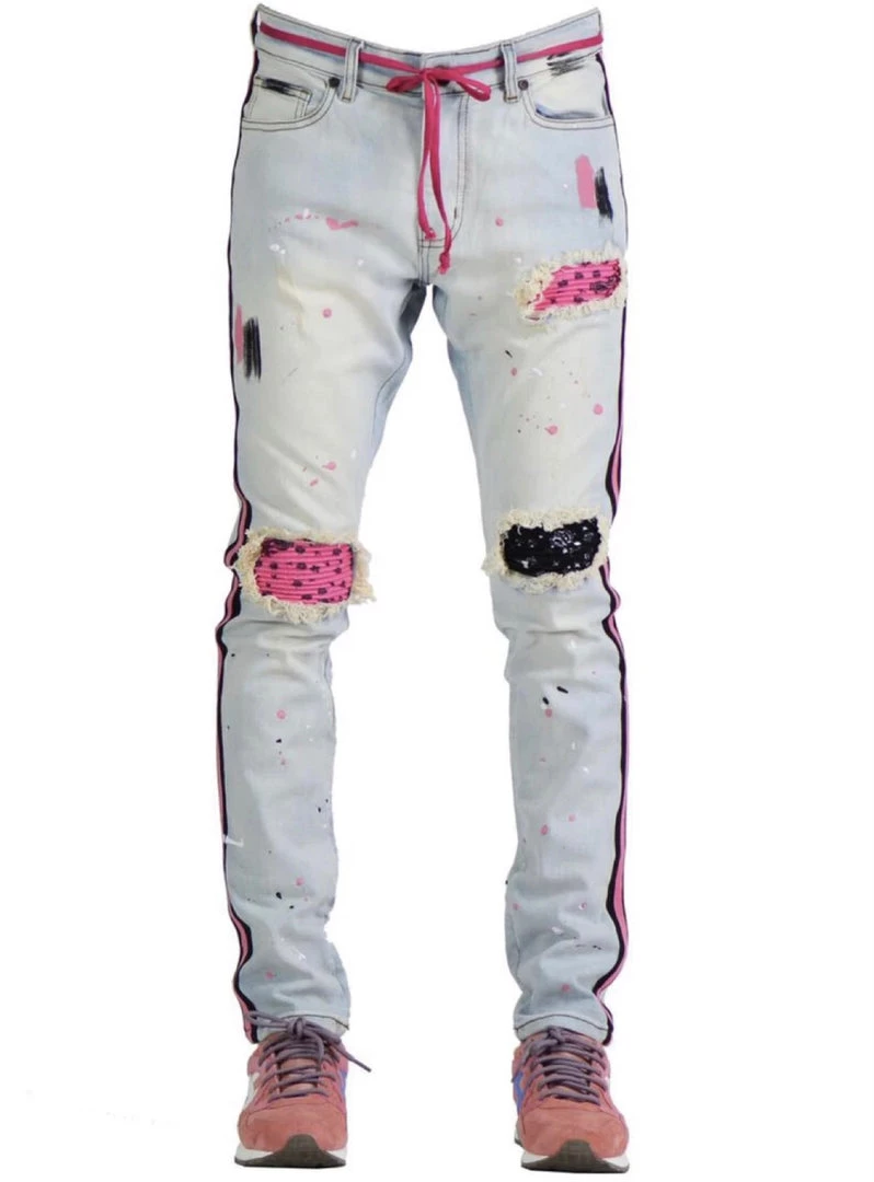 Shop All Focus Jeans – Bandana Patches And Stripes – Light Vintage And Pink – 3185