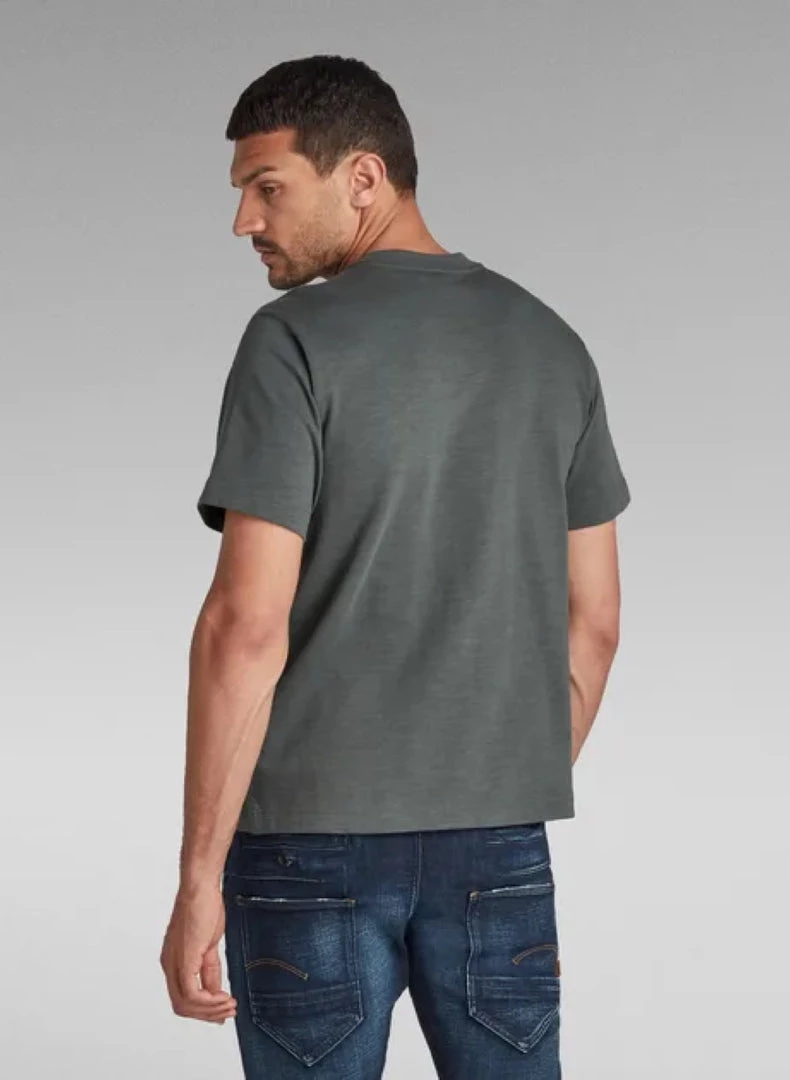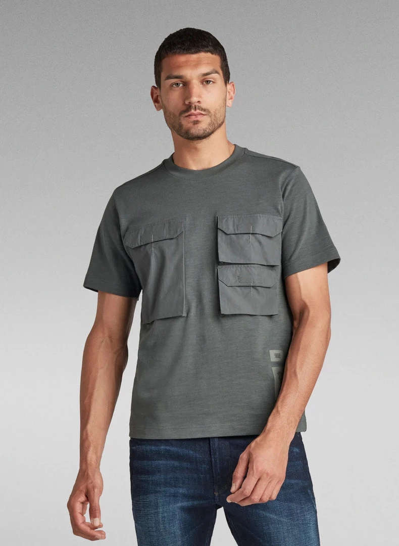 Organic cotton T-shirt Pocket is designed in a loose fit and features woven flap pockets at the chest. The ‘strike through’ embroidery stitch indicates the Velcro closure underneath. This short sleeved tee is finished with a ribbed neckline to add to a comfortable wear.