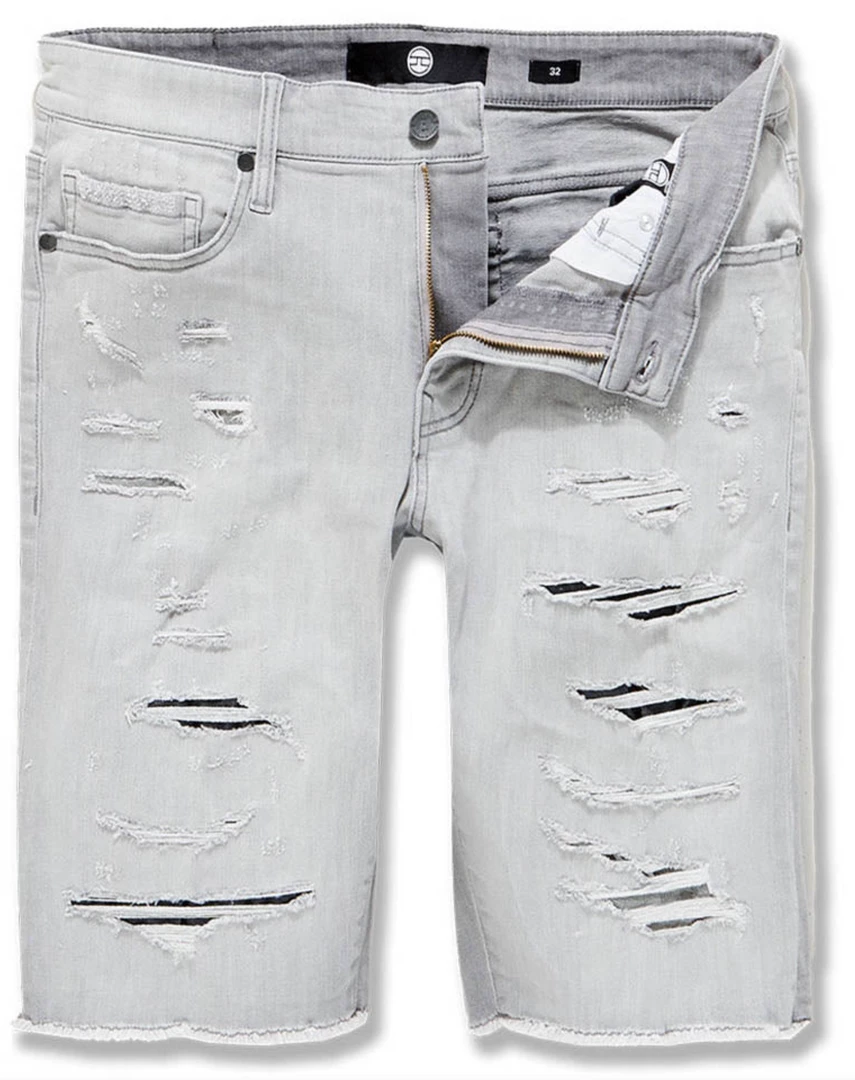 - These Jordan Craig Shorts Feature Regular rise, Classic stone wash, Rip and repair design back with dark blue raw denim backing, Unique distressing on each pair and Deep front pockets.