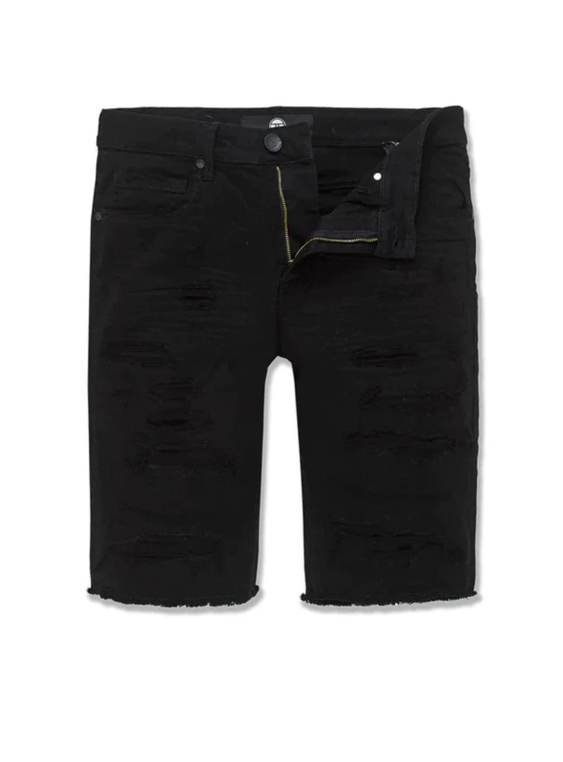 - These Jordan Craig Shorts Feature Regular rise, Classic stone wash, Rip and repair design back with dark blue raw denim backing, Unique distressing on each pair and Deep front pockets.