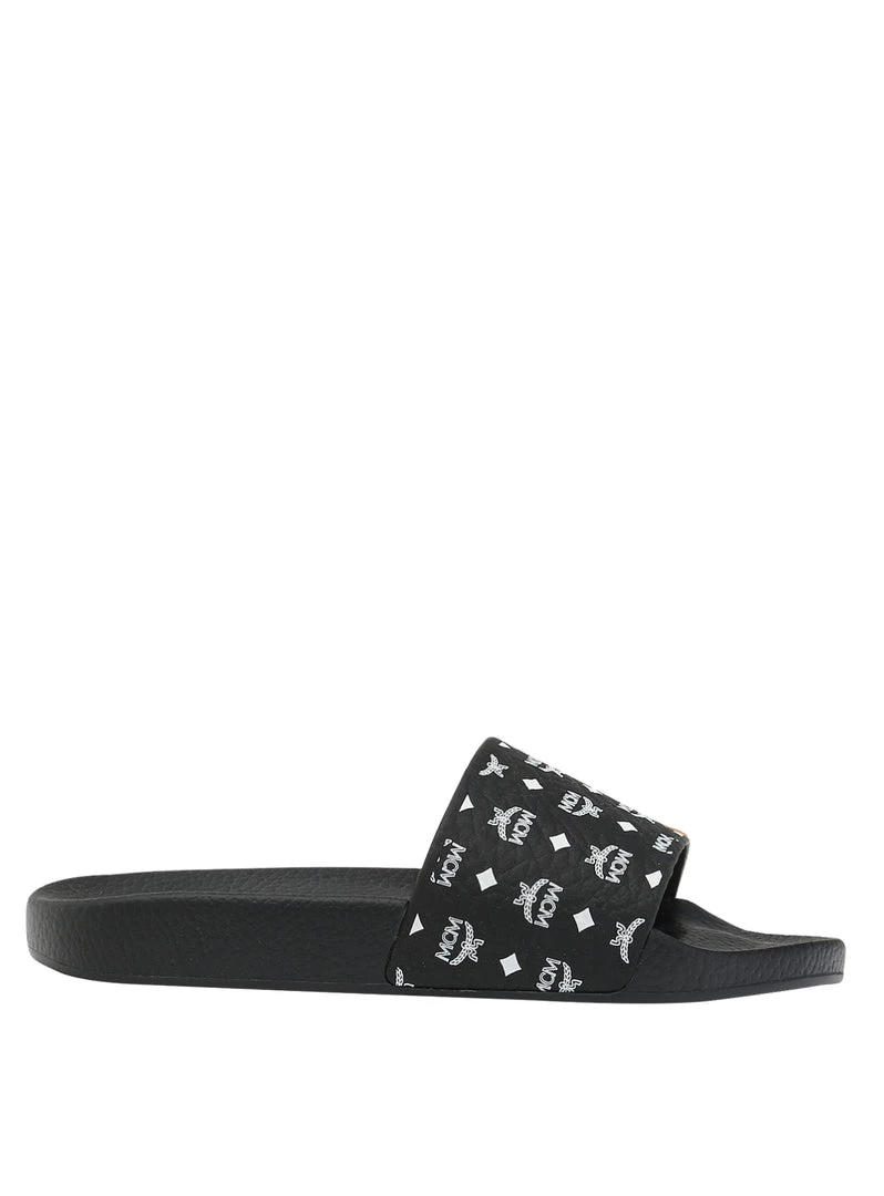 The classic letters, laurels, and diamonds enrich the textured vamp of these legacy slides. Sublime comfort is achieved through a slightly grained footbed and specially-developed rubber sole.