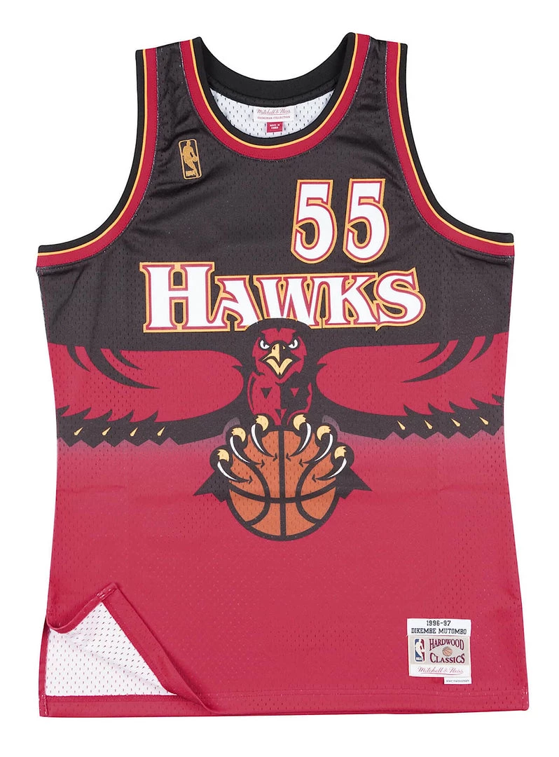 Shop All Mitchell & Ness Jersey – Atlanta Hawks Dikembe Mutombo 55 – Black And Red – SMJYGS18138