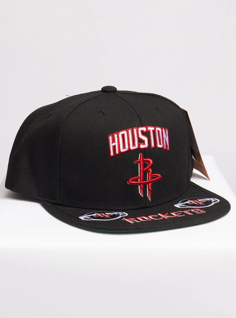Front Load! This Mitchell & Ness snapback hat portrays all your favorite Houston Rockets team logos on the front. It features embroidered team logo and word mark on front panel and Mitchell & Ness word mark embroidery on back. With alternate team logos and word mark embroidery on visor. Kelly green under visor decoration.