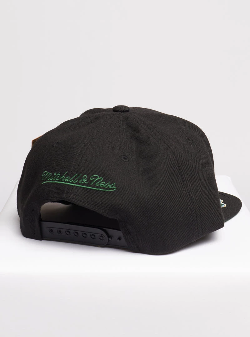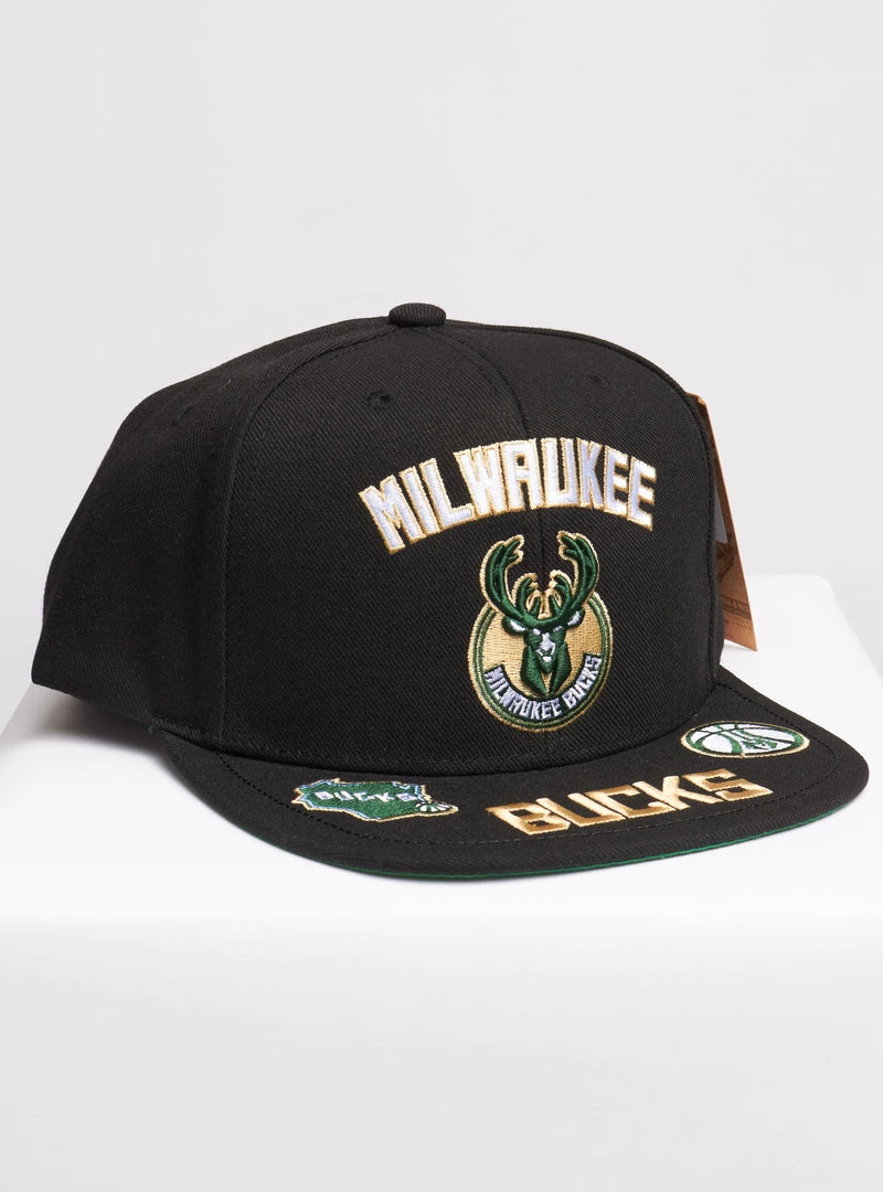 Front Load! This Mitchell & Ness snapback hat portrays all your favorite Milwaukee Bucks team logos on the front. It features embroidered team logo and word mark on front panel and Mitchell & Ness word mark embroidery on back. With alternate team logos and word mark embroidery on visor. Kelly green under visor decoration.