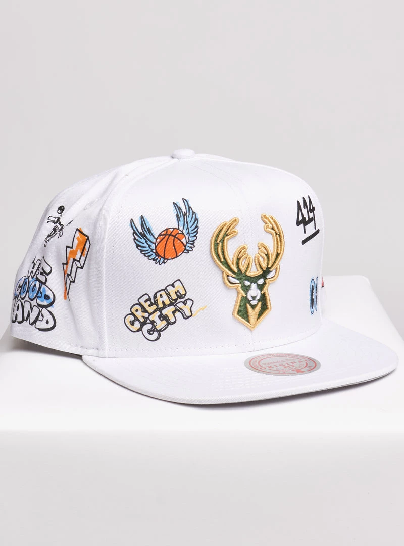 Shop All Mitchell & Ness Snapback – NBA Hand Drawn Milwaukee Bucks – White – SH20037