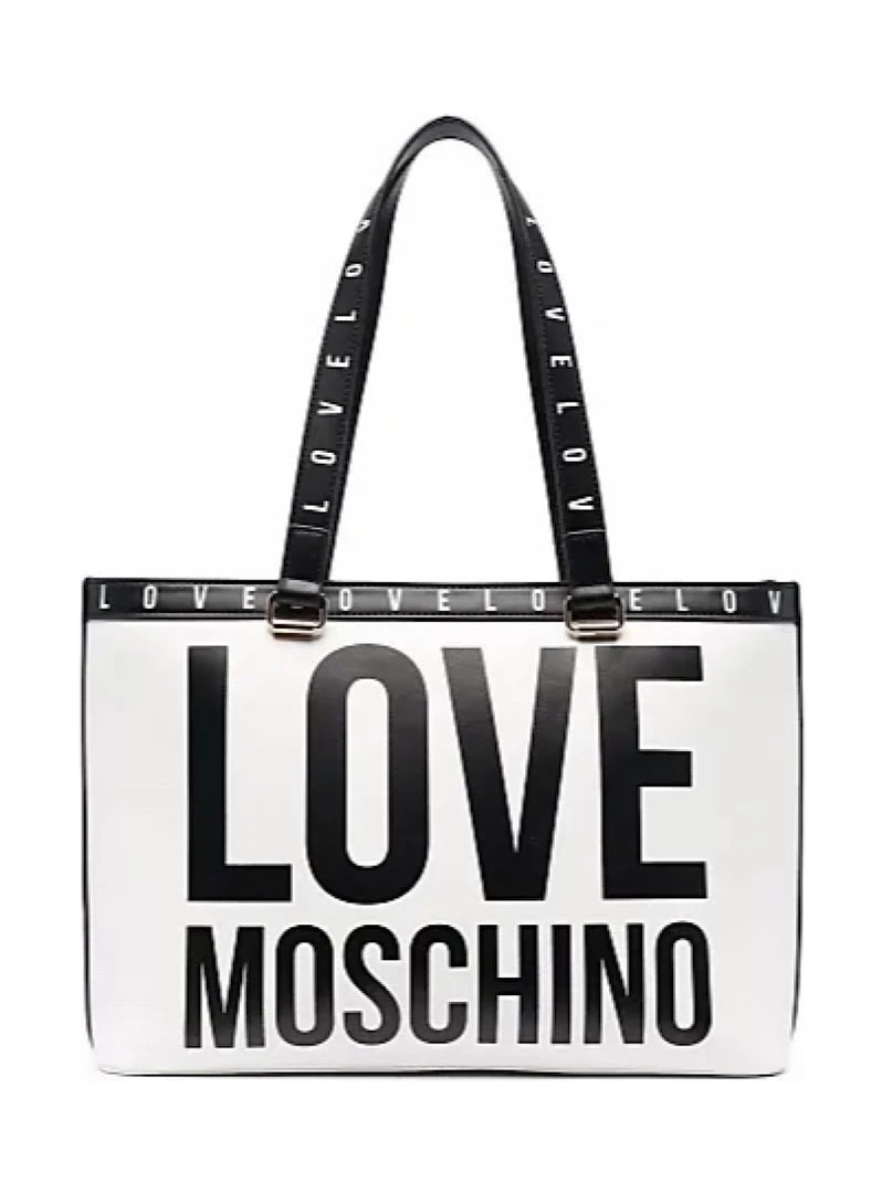 Shop All Moschino Bag – Logo All Over Tote – White And Black – JC4180PP1DLI0100
