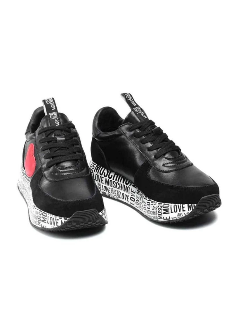 The product with code JA15364G1EIA400A leather is a women’s sneakers in black designed by Love Moschino. It has features like side detail, logo, front logo, print which can vary. Wear it for these occasions: aperitif with friends. Ideal for your style sporty glam, casual.
