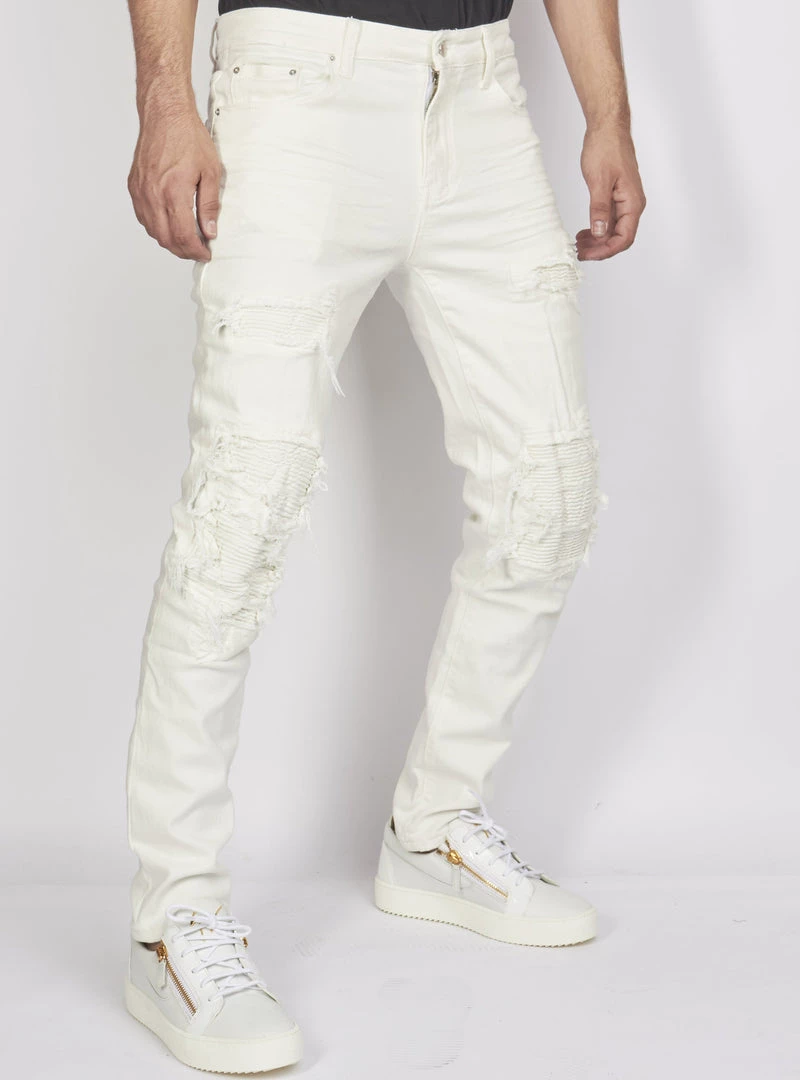 Shop All Politics Jeans – Distressed With Ribbing – White – PLTKS0521592