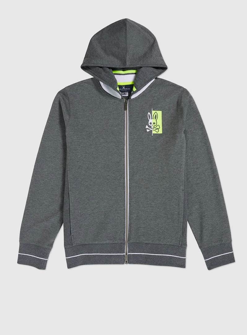 Our mens Palmer full zip hoodie isn’t your average hoodie. Crafted from 100% lightweight French terry cotton, the Palmer is incredibly durable and supremely comfortable. The Palmer features all the hallmarks of our trusted full zip hoodies, with kangaroo pockets, a two-way zipper and a structured hood. We’ve given the Palmer a modern twist, with an elastic lace lock drawstring system that allows the hood to be adjusted with ease. Two-toned tipping on the ribbed cuffs and hem match the sleek Psycho Bunny branding on the chest, giving the Palmer a tasteful touch of color that sets it apart.