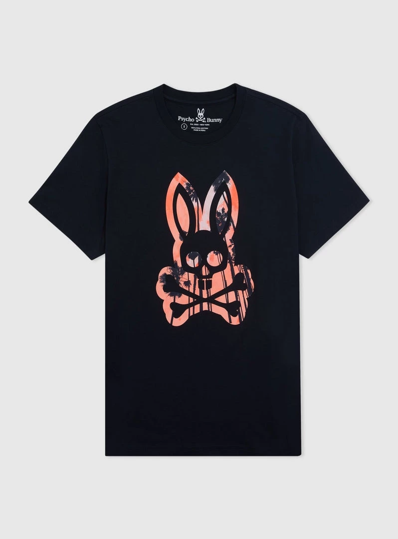 The mens Leeson graphic tee serves up summer vibes. Crafted from only the softest Pima cotton, this graphic tee is cut a little bit longer than the average T-shirt, with a trim fit that hits the sweet spot between classic and slim. Taped seams in the shoulders and a ribbed collar ensure it never loses that perfect shape. The Leeson tee is finished with a vibrant Psycho Bunny graphic on the chest that calls to mind summer sunsets and palm tree-lined skies.