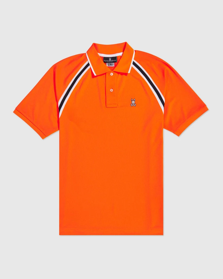 Our mens Tapton sport polo is crafted from a lightweight, moisture-wicking cotton-poly blend to keep you comfortable when the pressure’s on. With its lightweight construction, side vents and trim fit, the Tapton is designed to move seamlessly with your body—rather than get in the way. The Tapton is finished with all of our trusted trimmings, like mother-of-pearl buttons, taped seams, a collar that never rolls and an embroidered Psycho Bunny logo. We’ve rounded the Tapton off with colorful panelling along the raglan sleeves.