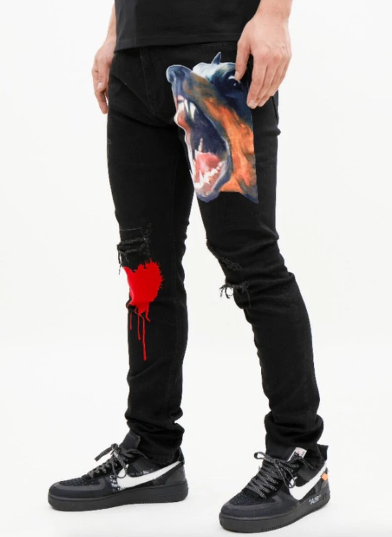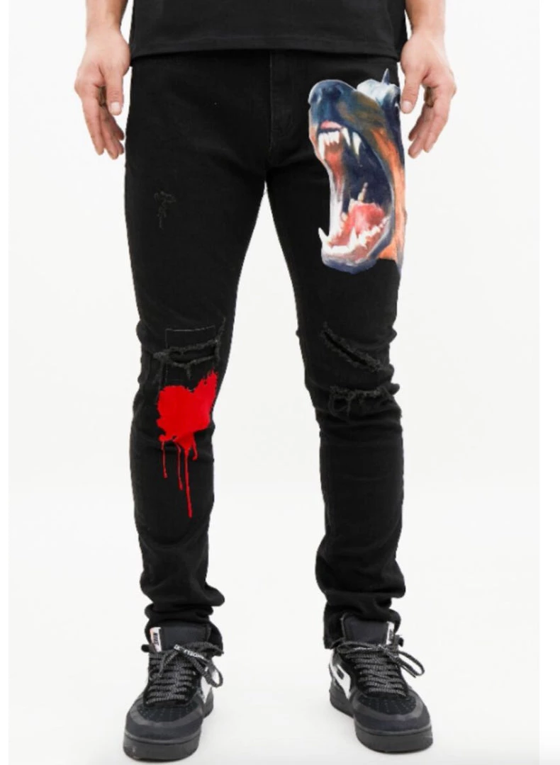 These jeans are premium quality and have a unique eyes design. They are made of 100% cotton material. They are slim fit and they fit true to size. It was designed in the USA.